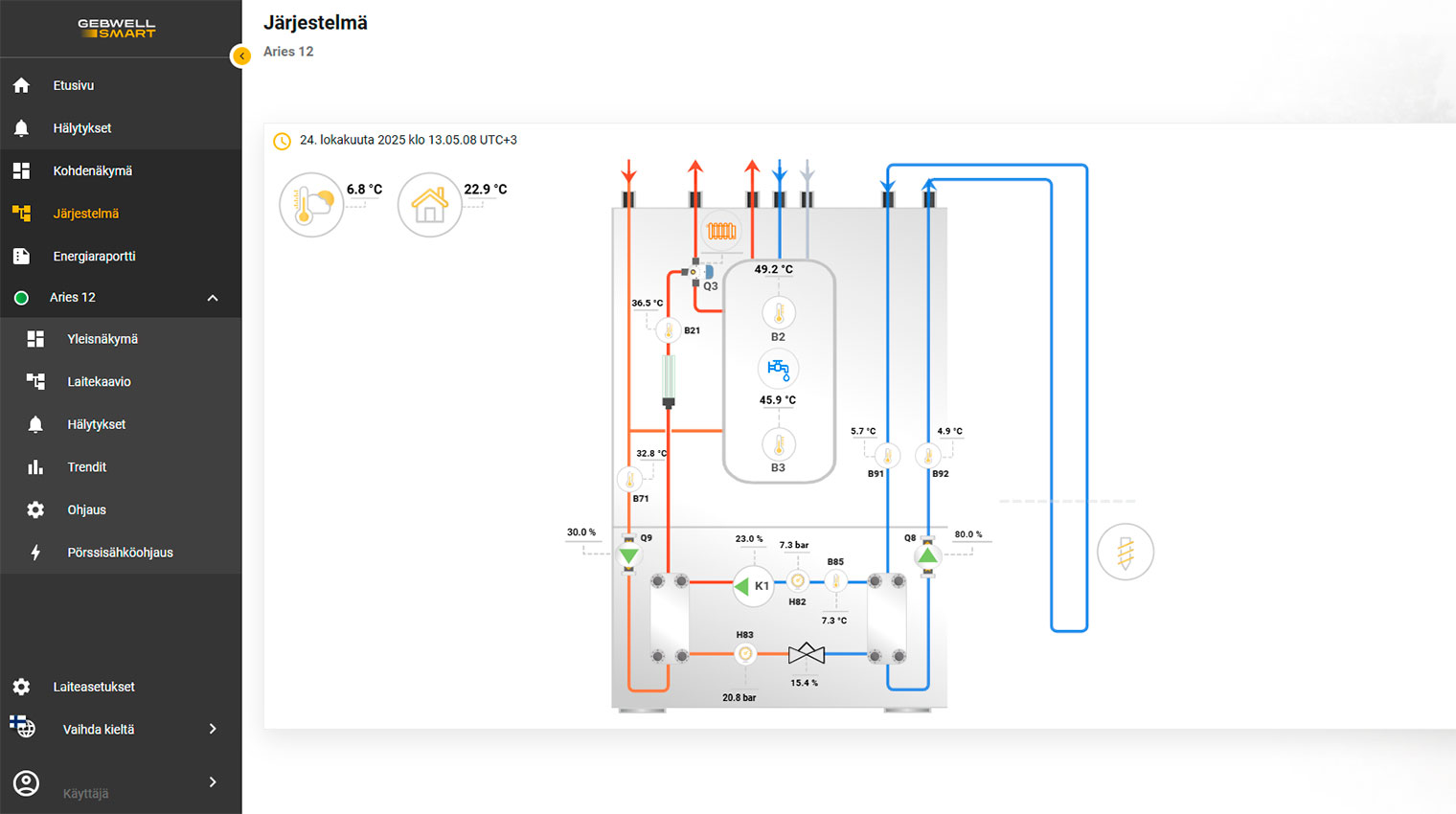 Hub on tuonut helpotusta myös huoltoliikkeen arkeen. Vaikka järjestelmästä tulisi häiriöilmoitus, päivystäjän ei aina tarvitse lähteä paikan päälle heti. “Tällaisessa tilanteessa voimme ottaa varajärjestelmän etänä käyttöön ja käydä paikan päällä seuraavana päivänä – se tulee myös edullisemmaksi asiakkaalle. Samoin saamme Hubista säädettyä esimerkiksi lämmityskäyrää, jos talossa kaivataan lisää lämpöä.”