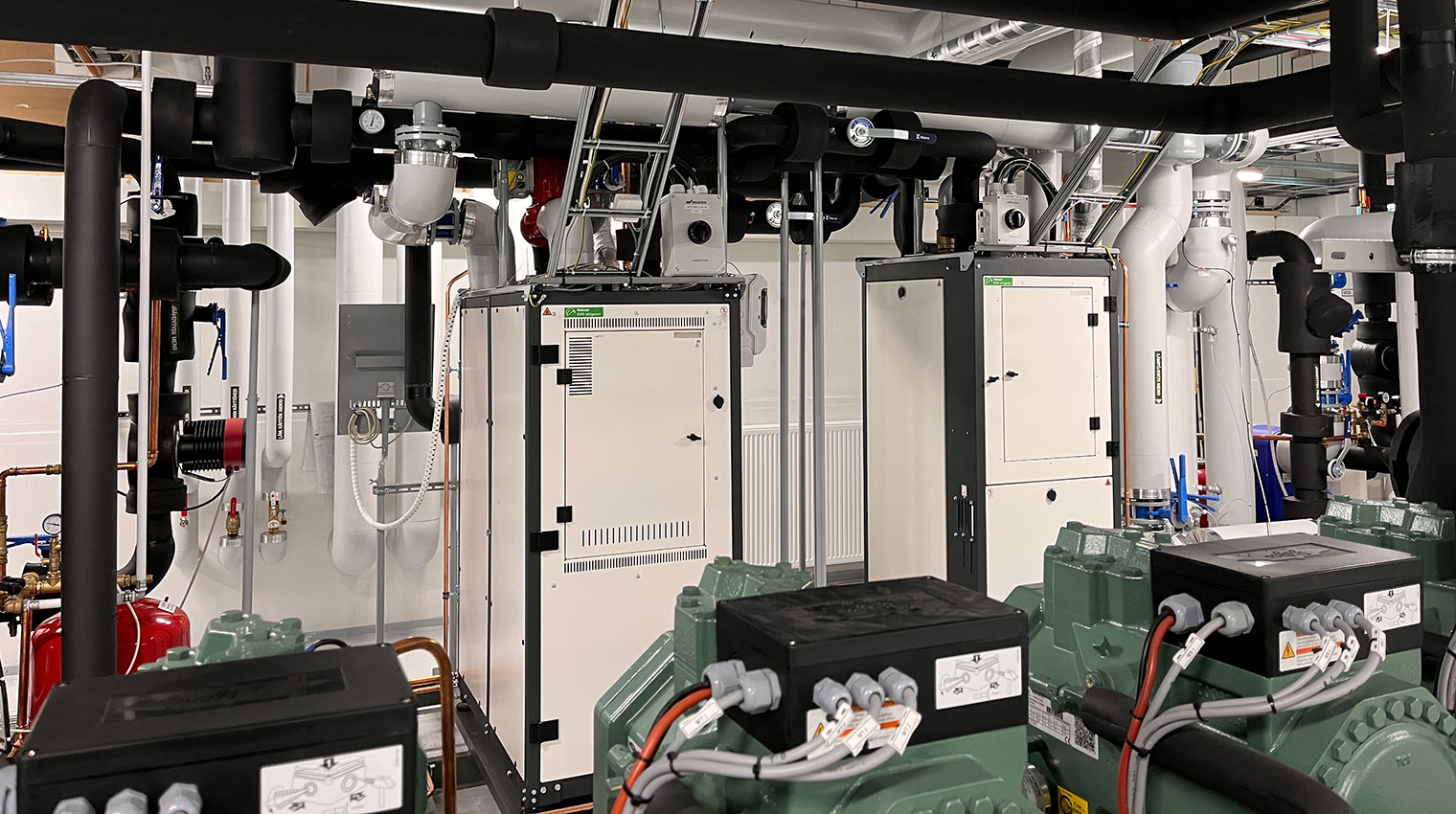 Valmiit moduulit tekivät kytkennät ja käyttöönoton suoraviivaisiksi: “Energiankierrätysjärjestelmä toimitettiin neljässä asennusvalmiissa moduulissa, mikä nopeutti ja helpotti paikan päällä tapahtuvaa asennusta merkittävästi. Moduulit oli helppo kytkeä yhteen ja liittää kiinteistön lämmitysverkostoon.”, Juntunen jatkaa.