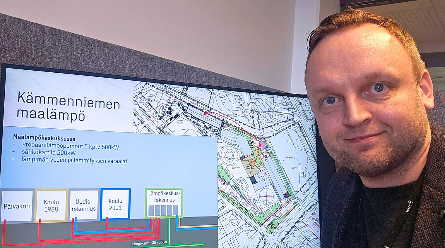 ”Vi valde bergvärme eftersom vi ville göra ett miljövänligt och hållbart val som håller långt in i framtiden. Avgörande faktorer var Tammerfors stads mål att avveckla oljan, 40 % statligt stöd för projektet samt låga livscykelkostnader. Flis eller pellets skulle dessutom ha krävt olja som stöddrivmedel,” säger Timo Heikkilä, ledande expert på Sweco Finland, ansvarig för värmesystemets planering.